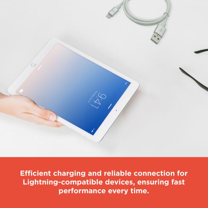 The 2.0 Type-A male to Lightning connection works with any standard USB plug and supports high-speed data transfer and fast charging, saving you time and keeping you connected when you need it most. Plus, the sleek white design adds a touch of classic elegance to your setup, complementing your Apple devices perfectly. Upgrade to a braided cable today and enjoy seamless a more durable, tangle free and seamless connection for all your Apple devices.